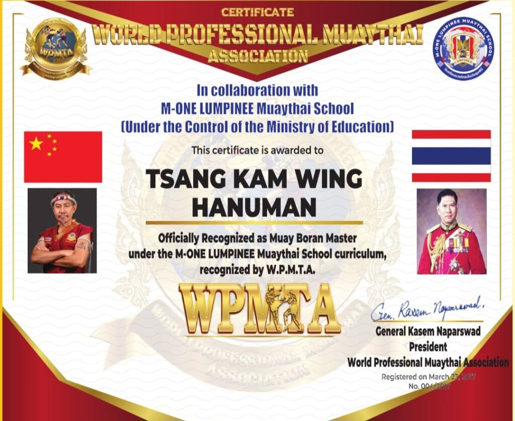 World Professional Muay Thai Association (WPMTA) President General Kassim Napasawa personally signed the honor to award the title of “China’s Chief Gu Thai Master” to the “Zeng Jinrong” from Hong Kong, China. Master Zeng Jinrong became the only one in China to receive this award. World Professional Muay Thai Association (WPMTA) appointed Chairman of China Ye Wenlong to present this honor